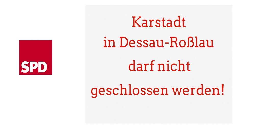 wie Ihr wisst, plant die GALERIA Karstadt Kaufhof GmbH in Dessau die Aufgabe des Standortes.Davon wären 60 Mitarbeiterinnen und Mitarbeiter direkt betroffen und die Dessauer Innenstadt würde erheblich geschwächt.Wir unterstützen deshalb den Aufruf des Betriebsrates, der Belegschaft sowie der Gewerkschaft und der Stadt Dessau-Roßlau